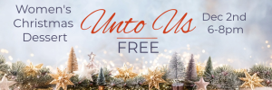 Women and girls age 10 and up are invited to join us December 2nd from 6-8 PM. Come enjoy a night of Fellowship as we celebrate the greatest gift ever given, the Lord Jesus Christ! Our theme is “Unto Us” from Isaiah 9:6 with a special message from our beloved Assistant Pastor’s Wife Michaela Hoe. We will also join in singing Christmas hymns to usher in this joyous season.